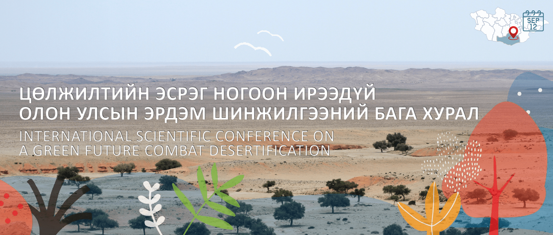 "Цөлжилтийн эсрэг Ногоон ирээдүй" олон улсын эрдэм шинжилгээний бага хурал нь Монгол орны говийн бүс нутагт нүүрлэж буй цөлжилт, уур амьсгалын өөрчлөлтийн сөрөг нөлөө, түүнтэй тэмцэх арга замыг хэлэлцэх зорилготой.